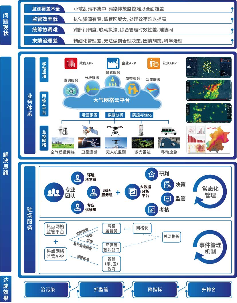 綜合監測、分析和科學有效管控全市整體空氣質量狀況,實現精準溯源治理、科學研判空氣質量、動態調度管控措施、合理降頻削峰。